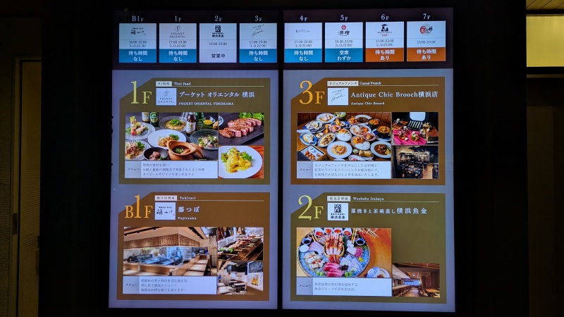 ビルの1Fにあったサイネージ。凄い!って思ったのは、お店の混雑状況がわかること。