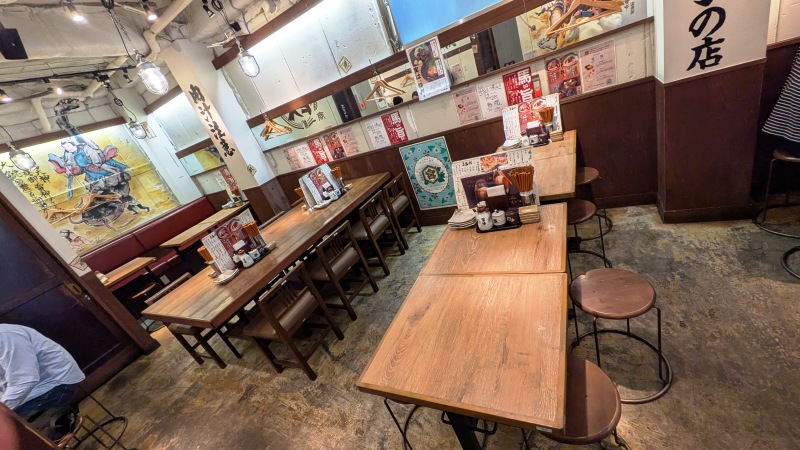 店内、テーブル席が多数のつくりで、今日は入口近くの4人掛けテーブル席を3卓占有!?させていただいてのオフ会。