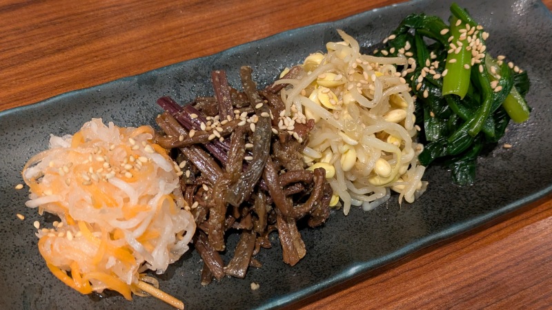 大根&人参・せんまい・豆もやし・ほうれん草のナムル4種盛り合わせ。