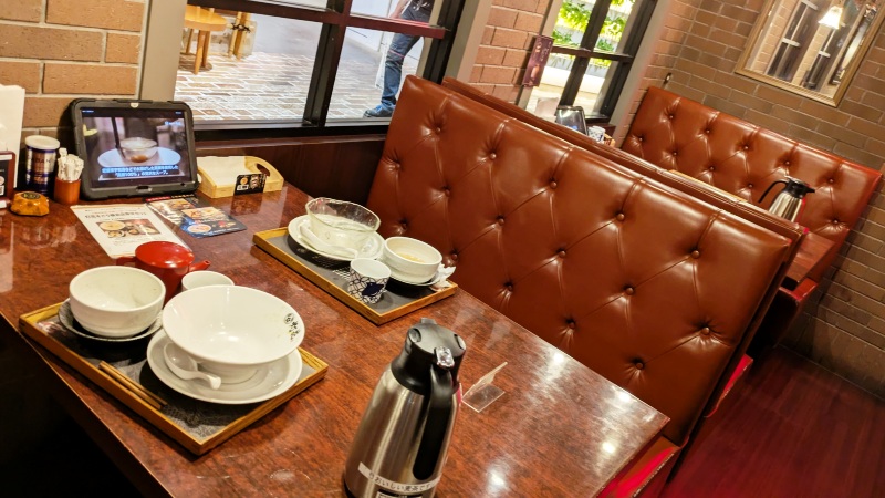 4人掛けのテーブル席も、ソファー席でなんともオシャレ。ラーメン店っていうか、バーにでも来たみたいです。