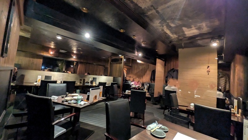 店内もウッディな装いで、正に古民家、場所もちょっとだけ駅から離れていて、控えめの照明も手伝って隠れ家感満載です。